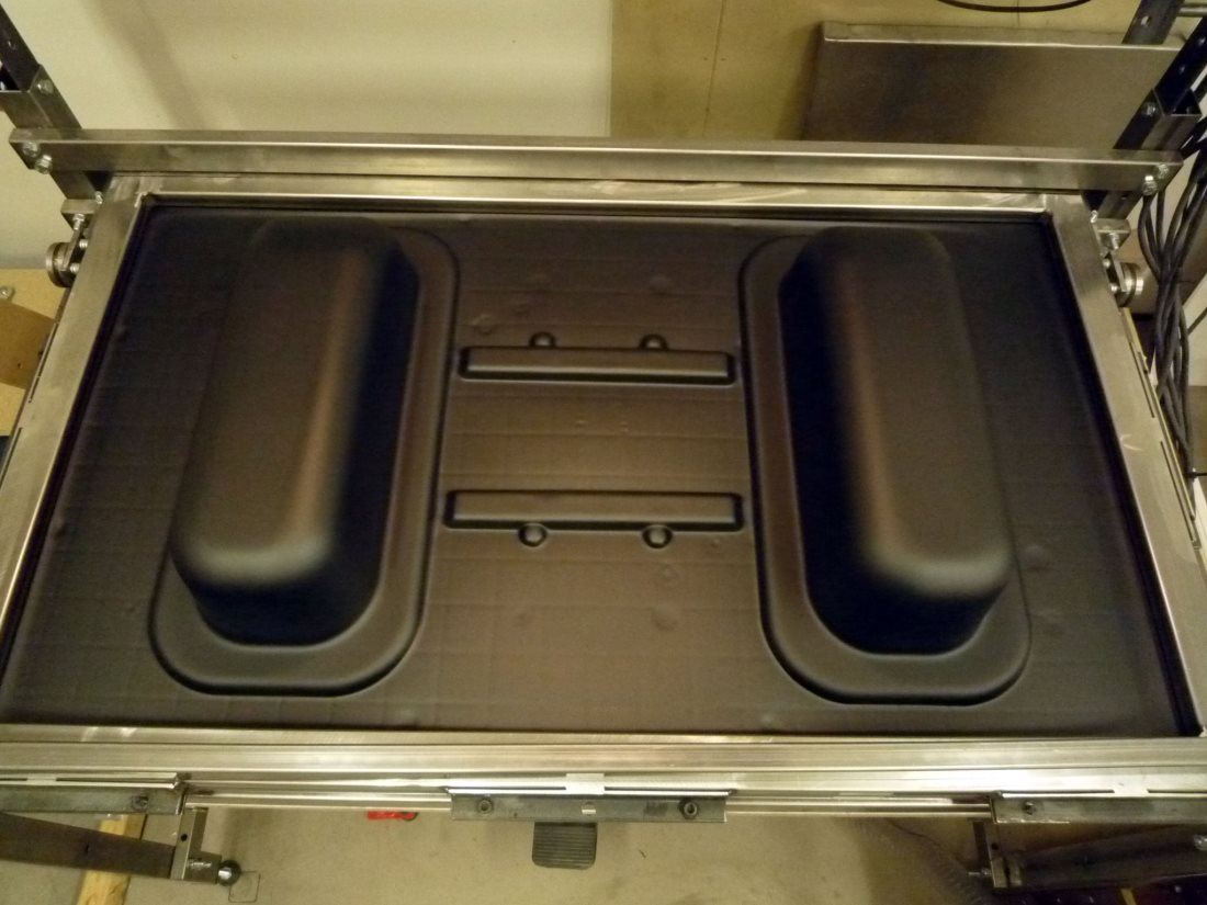 Maximal varmformningsyta i maskinen är 1360 x 860 mm. Amorfa plaster låter sig formas över ett bredare temperaturområde än delkristallina, vilket gör dom mer lämpade för denna plastformningsmetod. Exempel på material som ofta används för vakuumformning är ABS, PC, PS, PMMA, PVC, SAN.